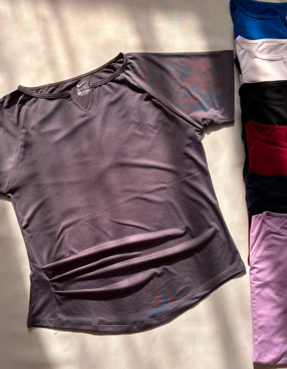 تیشرت یه ور چین یه تیشرت ورزشی خانگیه هم میتونی تو ورزش تنت کنی هم داخل منزل سمت راست تیشرت چین داره و کمر رو باریک تر نشون میده حتی باعث میشه شکم کوچکتر به چشم بیاد این تیشرت رو میتونی زیر مانتو و شومیز بپوشی و هر جایی استفاده کنی آستین این تیشرت مطابق تصویر کوتاهه پایین کار هلاله با شرتک یا لگ به راحتی ست میشه یقه کار دلبریه و خیلی جذابه