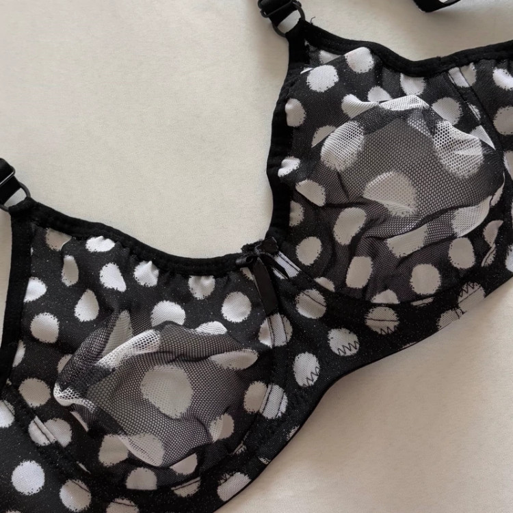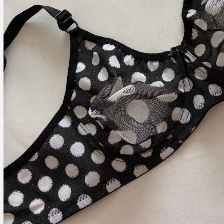 سوتین خال خالی حریره نرمه یکم مقاوم تره از باقیه سوتین ها بند قابل تنظیم داره دو سایز داره اکلیلیه وسطش دوخت نداره و باعث خوش فراتر نشون دادن بدنتون میشه و از رو و زیر لباس خیلی شیکه