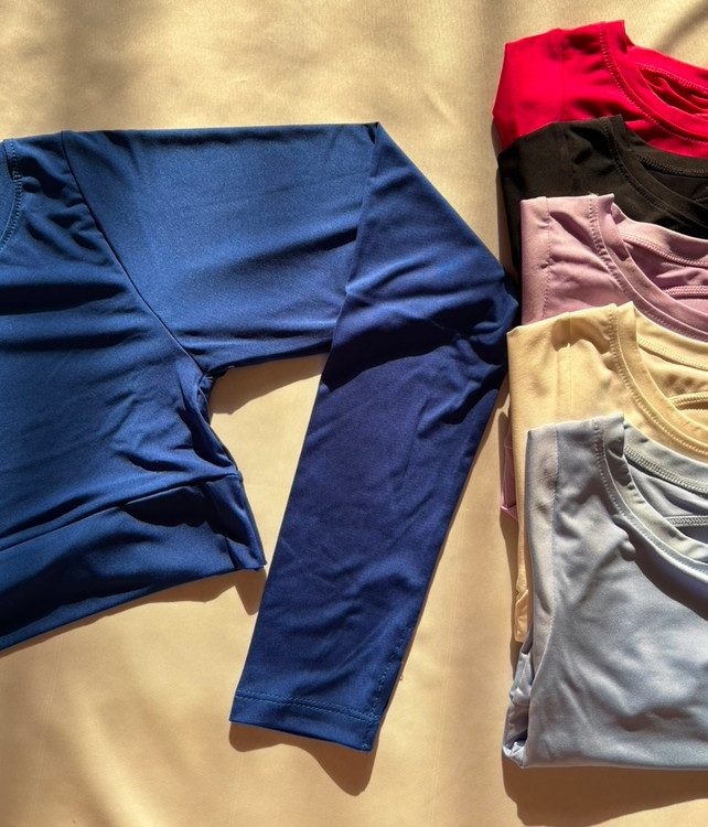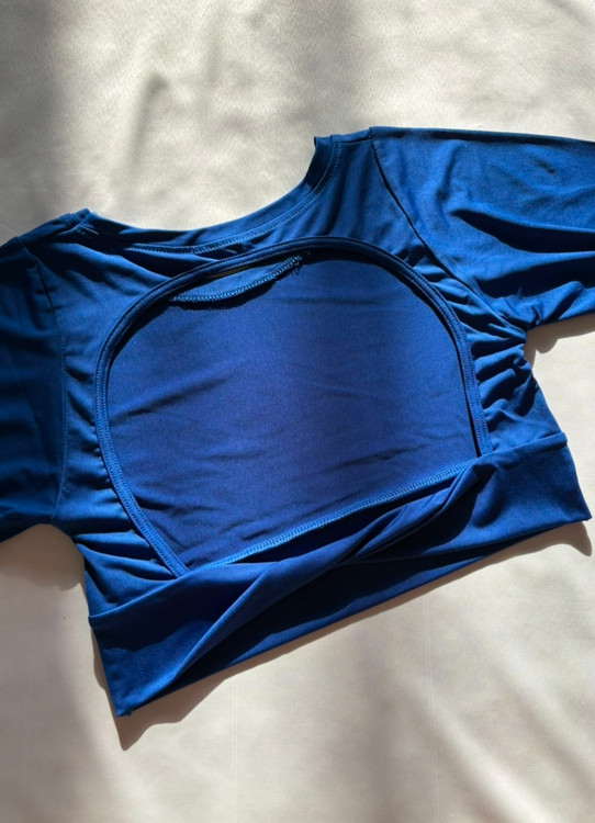 کراپ آستین بلند جنس فلامنت،پشت کار باز، مناسب تمرینات داخل سالن ،آستین فینگردار