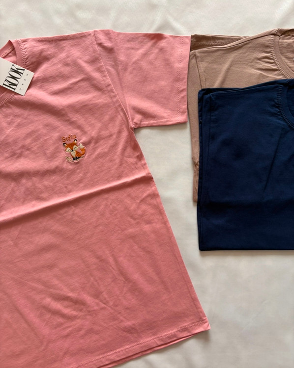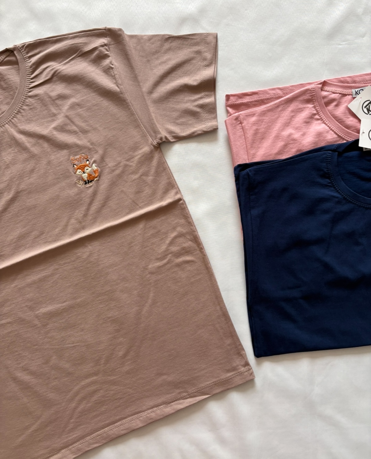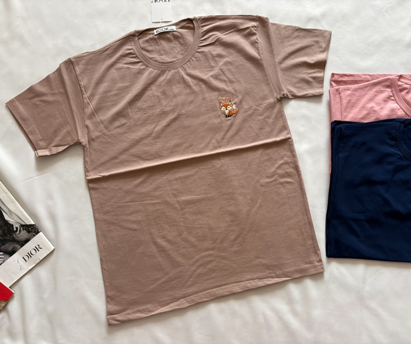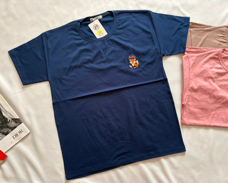 تیشرت نخ پنبه درجه یک گلدوزی شده فری سایز از ۳۶ تا ۴۴
